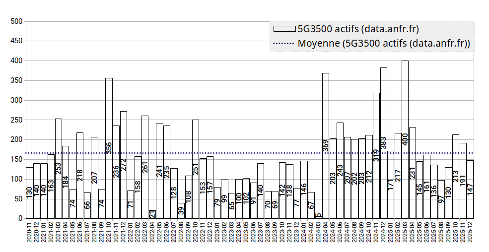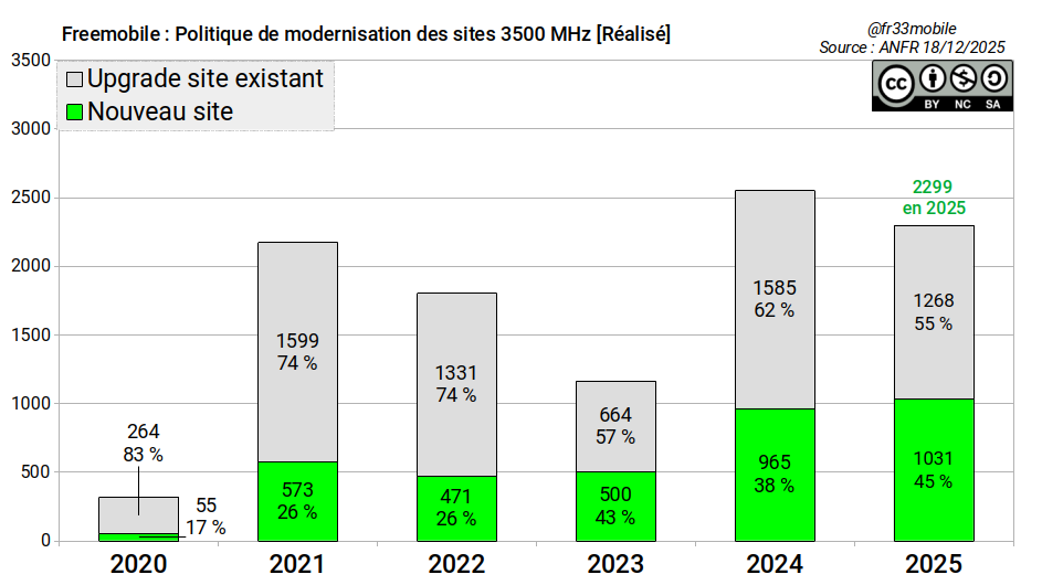 En effet, les 2151 sites livrés en 2025 sur moins de 11 mois représentent une moyenne mensuelle de ~195 sites.